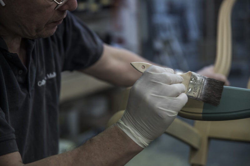 Vi lagar, retuscherar, lackerar om och kompletterar med hantverksmässiga måleritekniker – i samarbete med skickliga tapetserare och möbelsnickare.